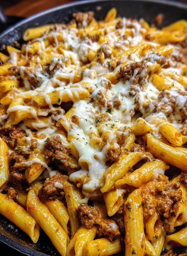 Aksamitny Kremowy Makaron Penne z Wołowiną i Czosnkiem to wyjątkowa propozycja na elegancką kolację, łącząca intensywne smaki z delikatną konsystencją.