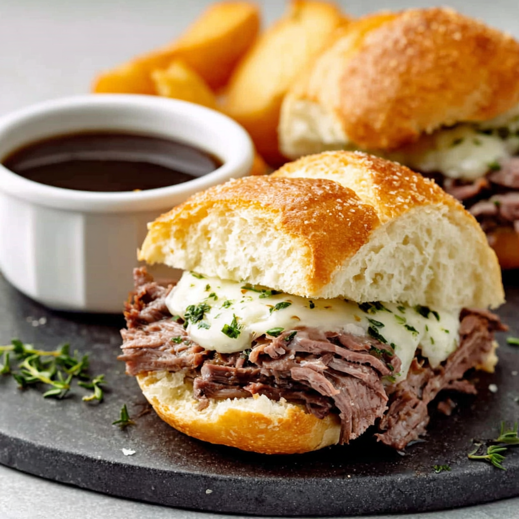 Tender Crock Pot French Dip Sandwiches with Au Jus