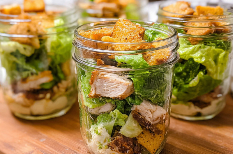 Layered Chicken Caesar Salad Jars for Meal Prep