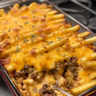 Szalona zapiekanka cheeseburger z frytkami